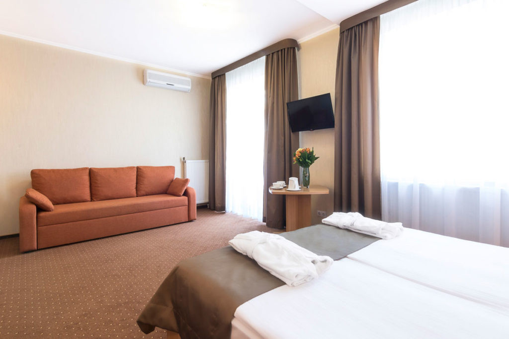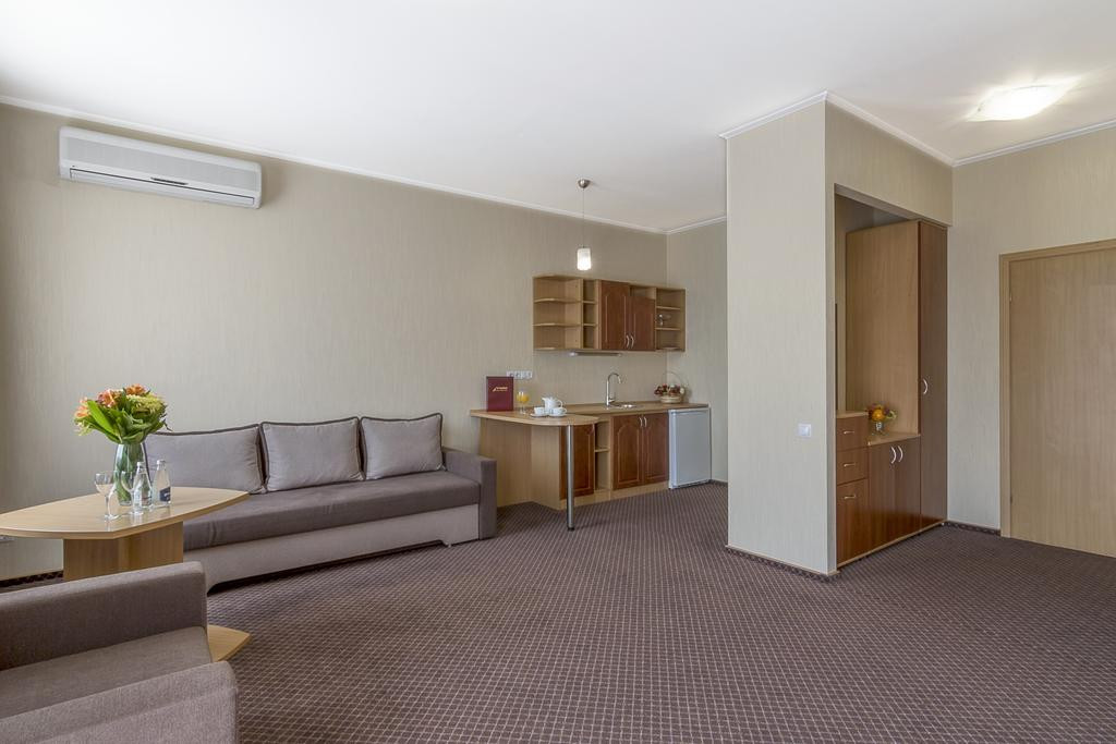 Умови розміщення та проживання. Готель "Маріот Медікал Центр" відкрився у 2003 році. Чотириповерховий корпус готелю налічує 30 комфортабельних однокімнатних та двокімнатних номерів категорії Стандарт, Напівлюкс і Люкс. Кімнати оформлені в пастельних тонах, що створює атмосферу затишку та спокою. В номерах готелю є все необхідне для повноцінного відпочинку: зручні ліжка, сучасні меблі, шафа для одягу, телевізор з кабельним ТБ, безкоштовний інтернет Wi-Fi, телефон, електрочайник, холодильник, міні-бар. Номери містять санвузол з душовою кабіною або ванною, є фен, халати, тапочки. В номерах Люкс та Напівлюкс є сейф та система кондиціонування. Також в номерах категорії Люкс є власна міні-кухня з необхідним кухонним приладдям. В готелі функціонує система індивідуального опалення, подача холодної та гарячої води здійснюється цілодобово.